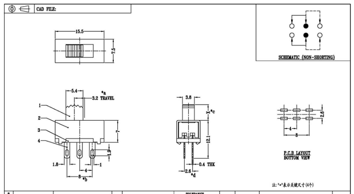 滑动 档位开关 SS-22F30 双极拨动开关 2档